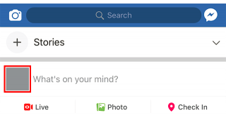 Action 1: From your Facebook house feed, tap your profile image to go to your profile.